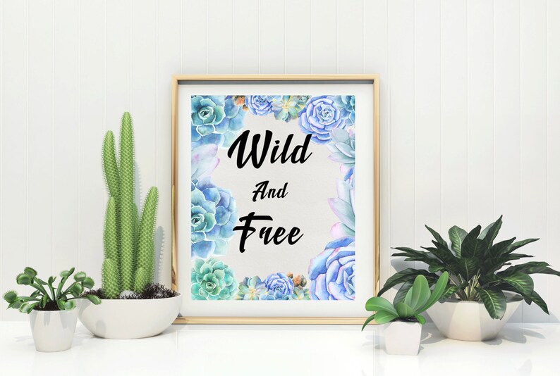 Wild And Free Succulent Print Succulent Wall Art Blue Green Print Printable Succulent Poster Boho Poster Wild Free Printable Quote